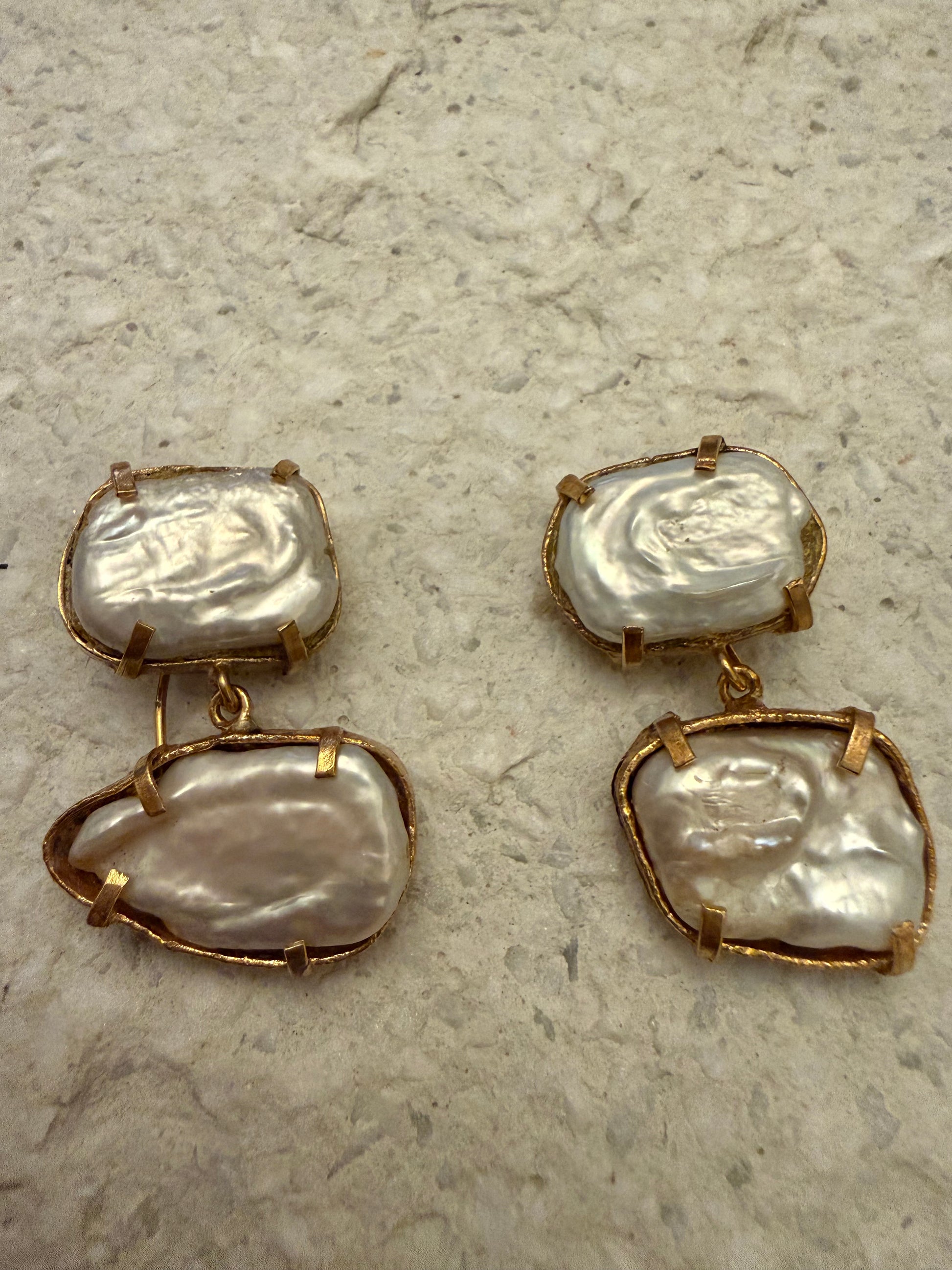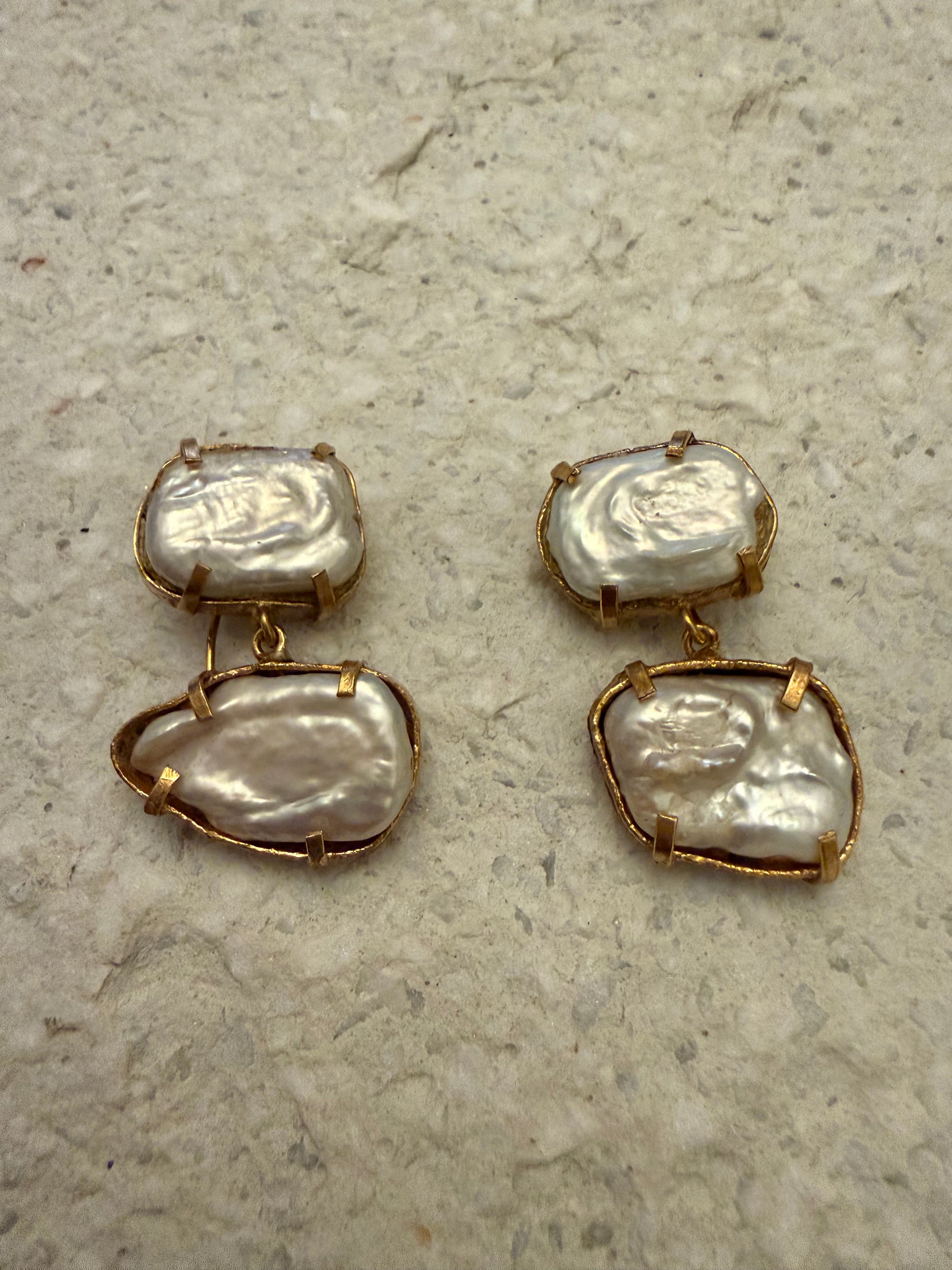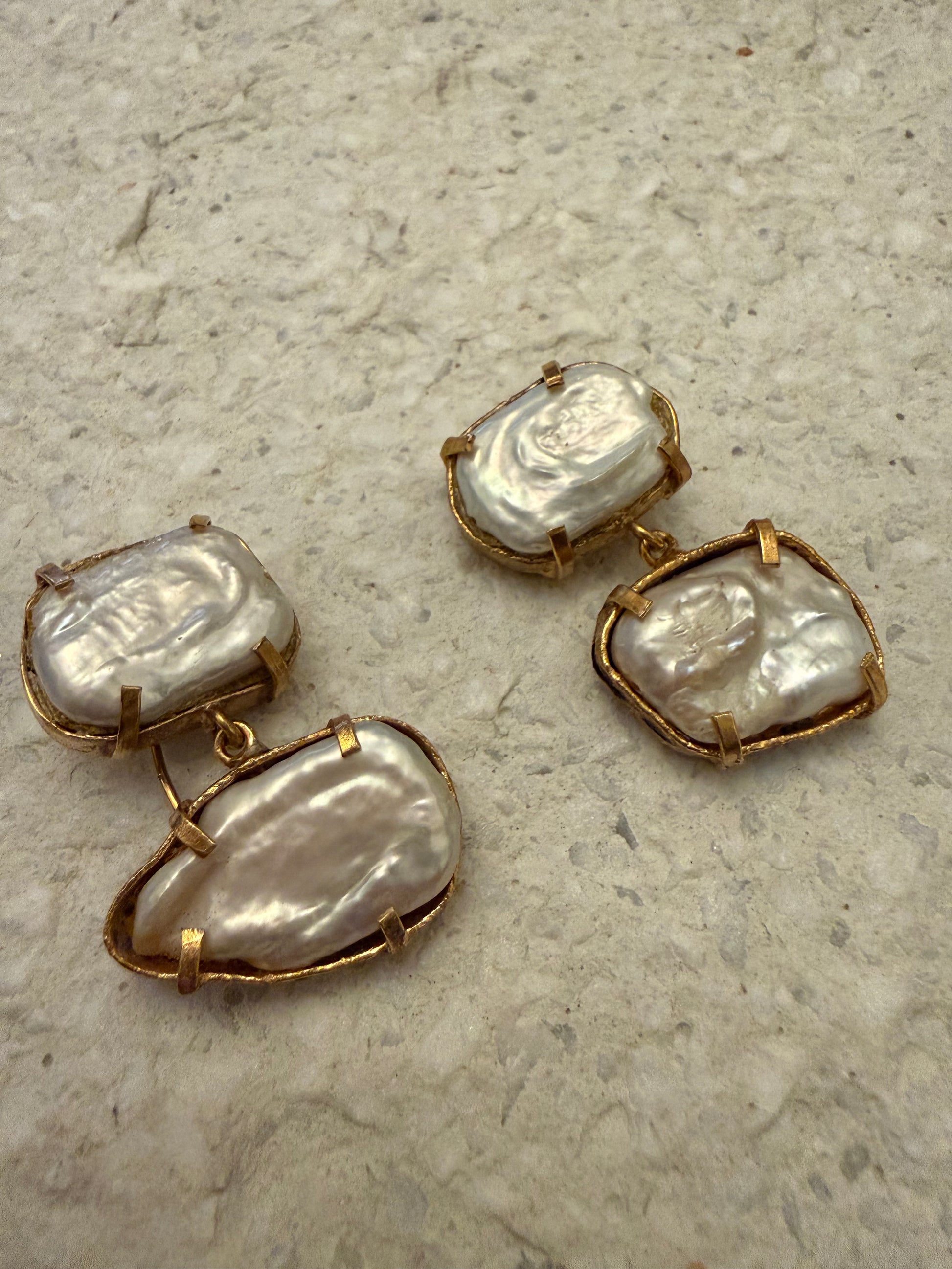 Artisanal Handmade Settings: Each pair is meticulously handcrafted by expert artisans, highlighting the intricate gold-plated textures that surround the pearls.