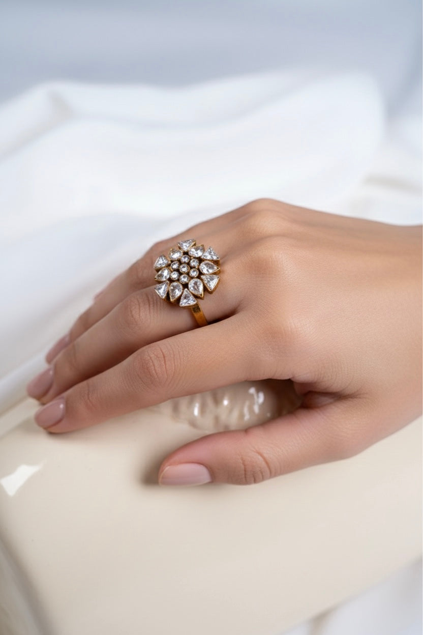 Addressing Concerns: Made with high-quality materials and plated with gold, this ring is durable and tarnish-resistant, ensuring long-lasting beauty.