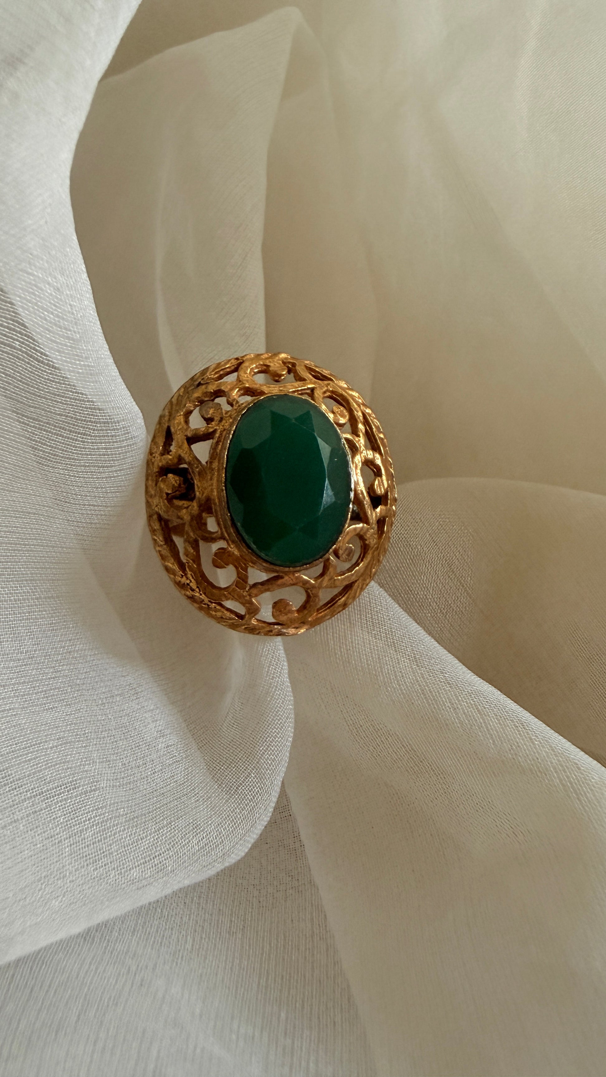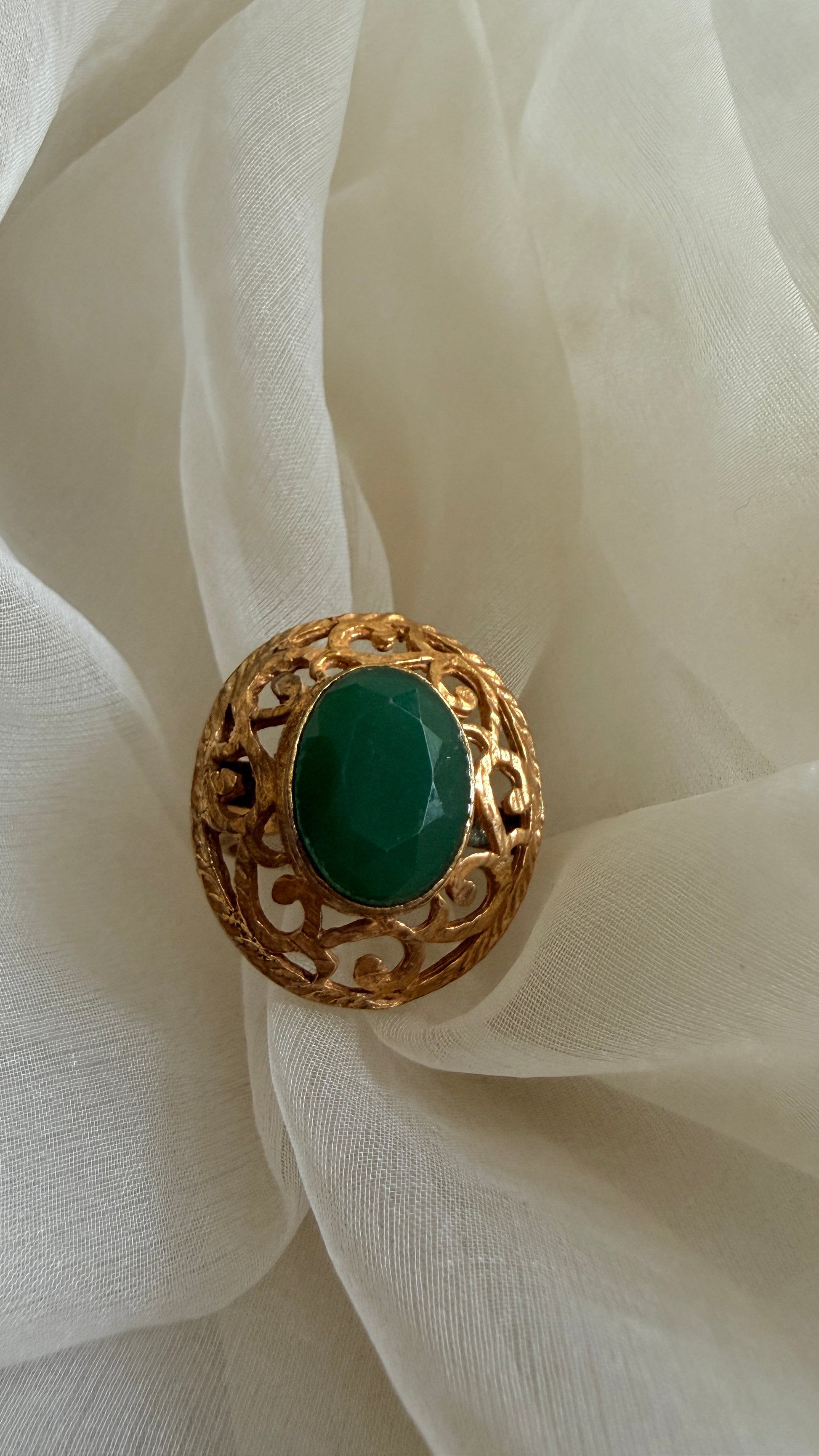 Experience timeless beauty with Farha, a handmade gold-plated natural stone ring. Crafted with care and precision, this ring features a stunning natural stone that exudes elegance and sophistication. Elevate any outfit and make a statement with Farha's unique design.