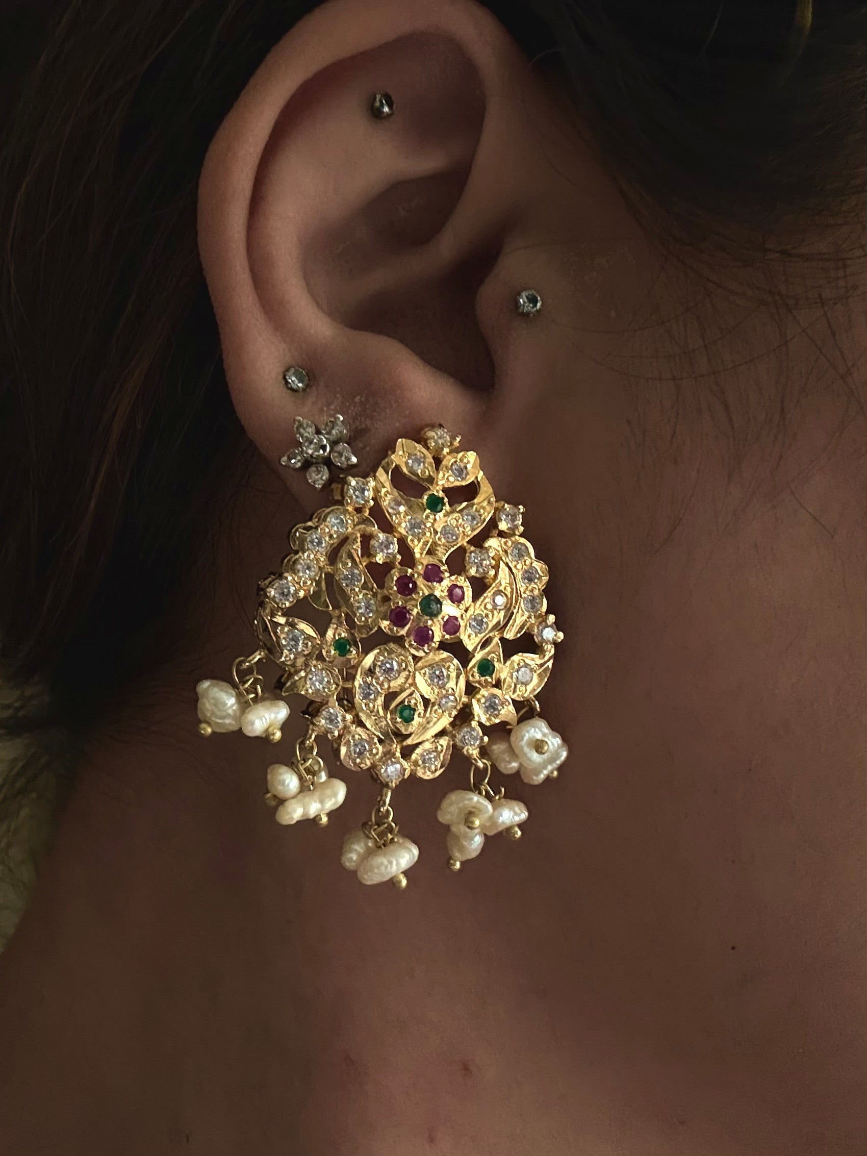 To keep your Gulnaar earrings in pristine condition, avoid direct contact with perfumes or hairsprays.
