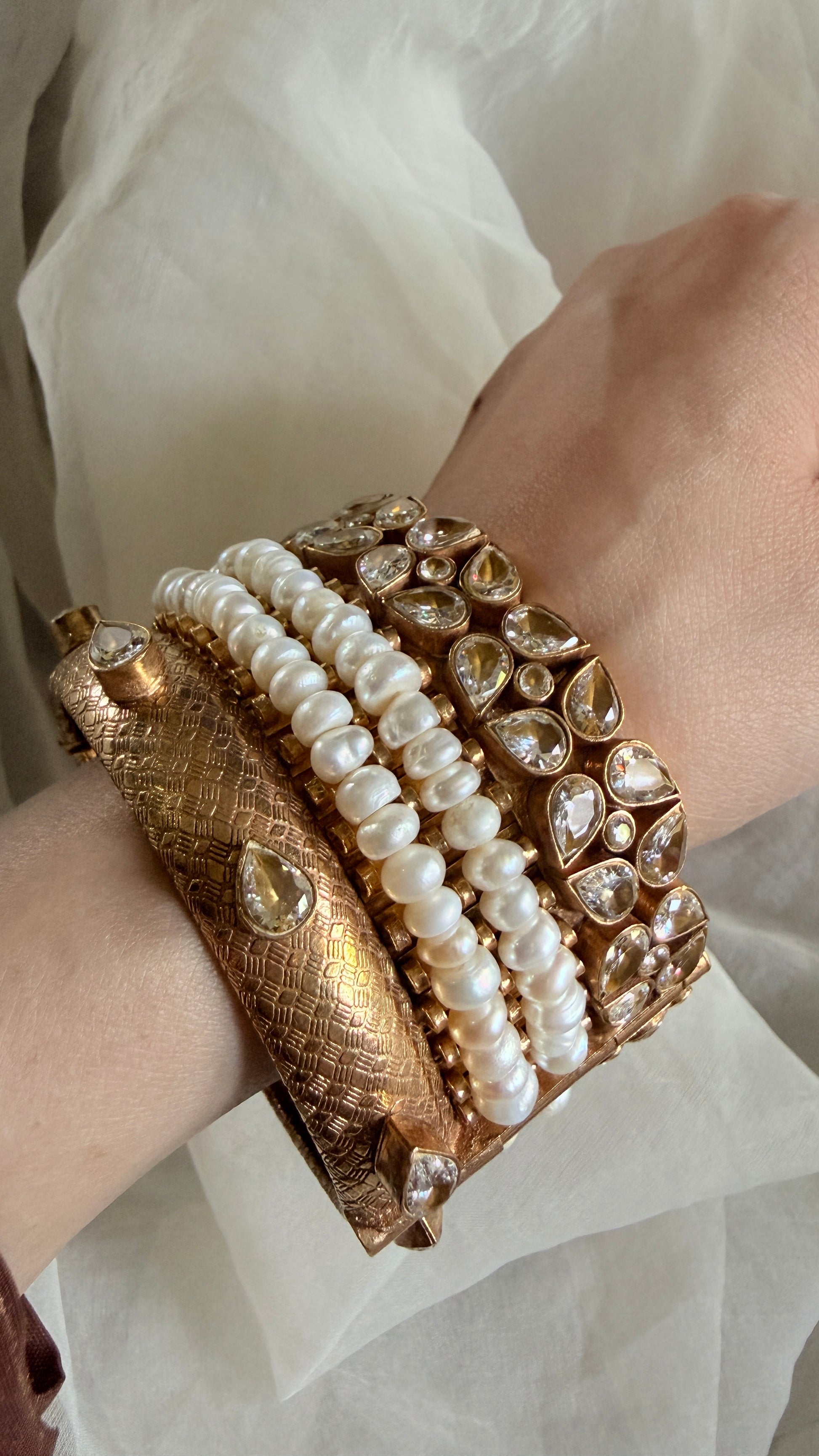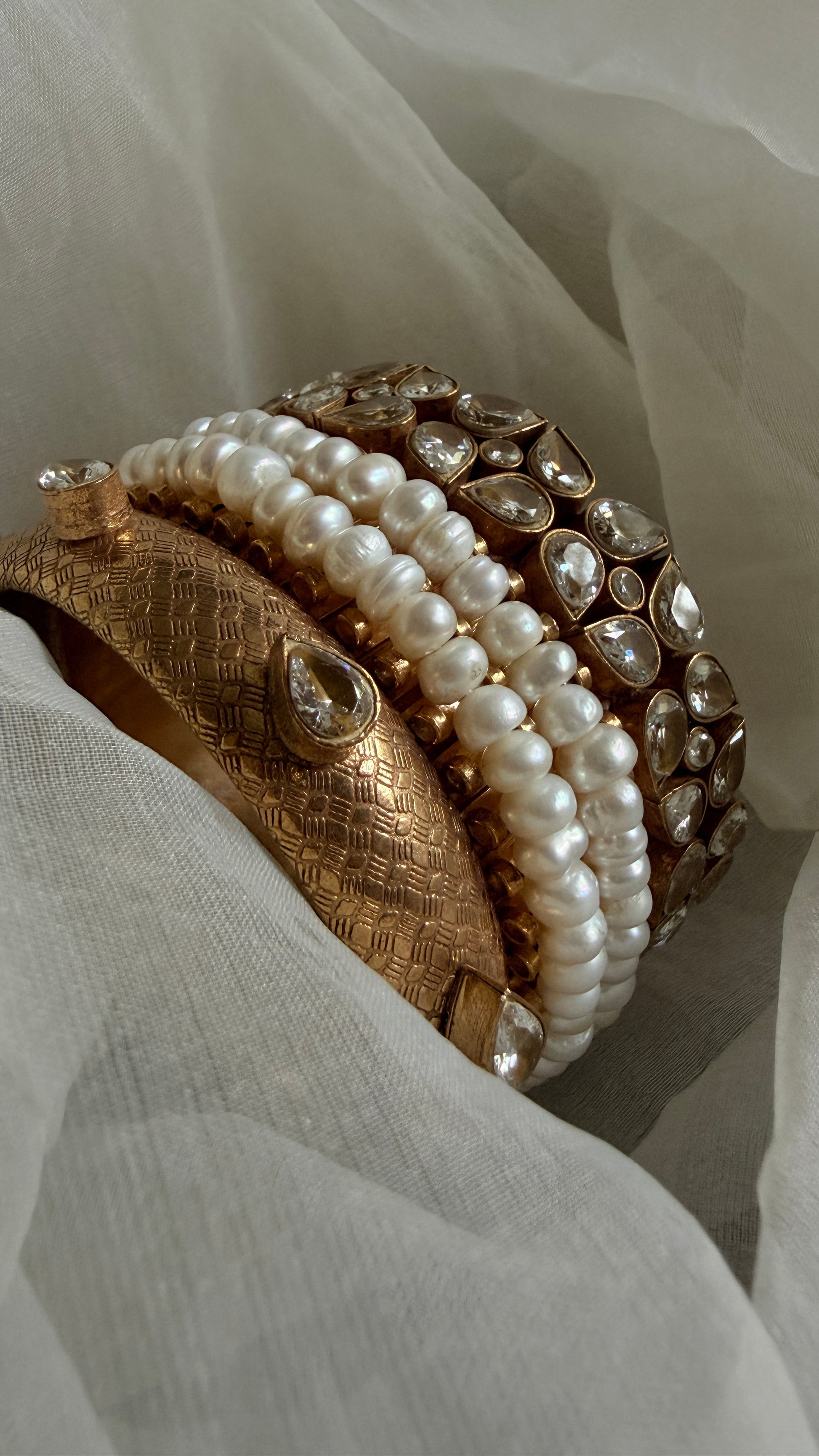 Real Pearls: The bangle is beautifully adorned with genuine pearls, offering a classic, luminous beauty that is unmatched. 🐚