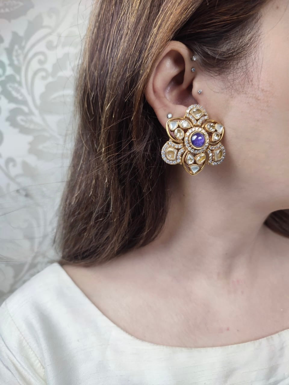 The Iris earrings are a captivating blend of traditional artistry and modern luxury. Adorned with high-quality real polki, these stunning earrings instantly add a touch of timeless elegance and sophistication to any ensemble, making them perfect for grand events or elevating your daily look. 💖