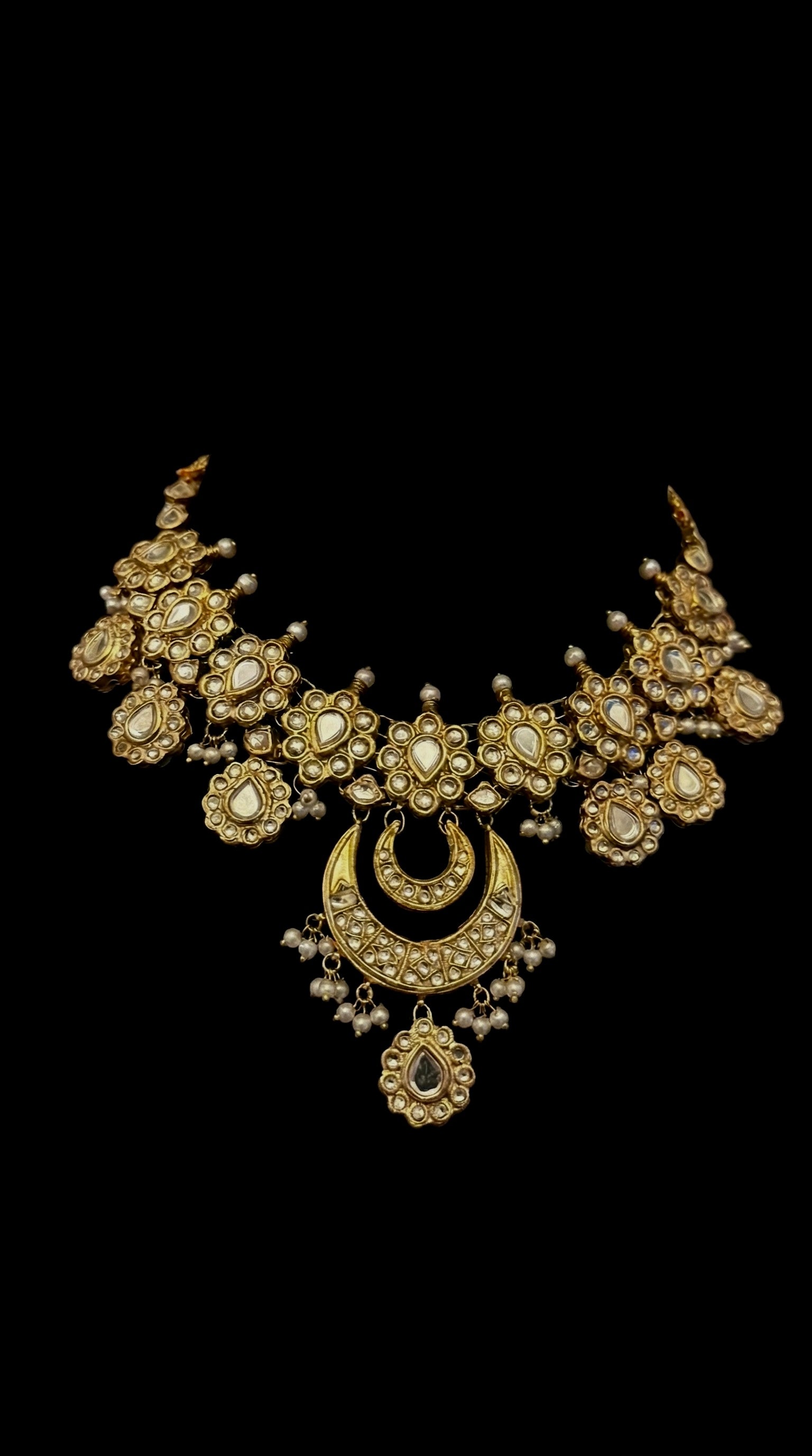 Stunning Kundan Gems: Adorned with dazzling Kundan gems, the necklace features a traditional setting that brings out the stones' inherent brilliance and intricate patterns.