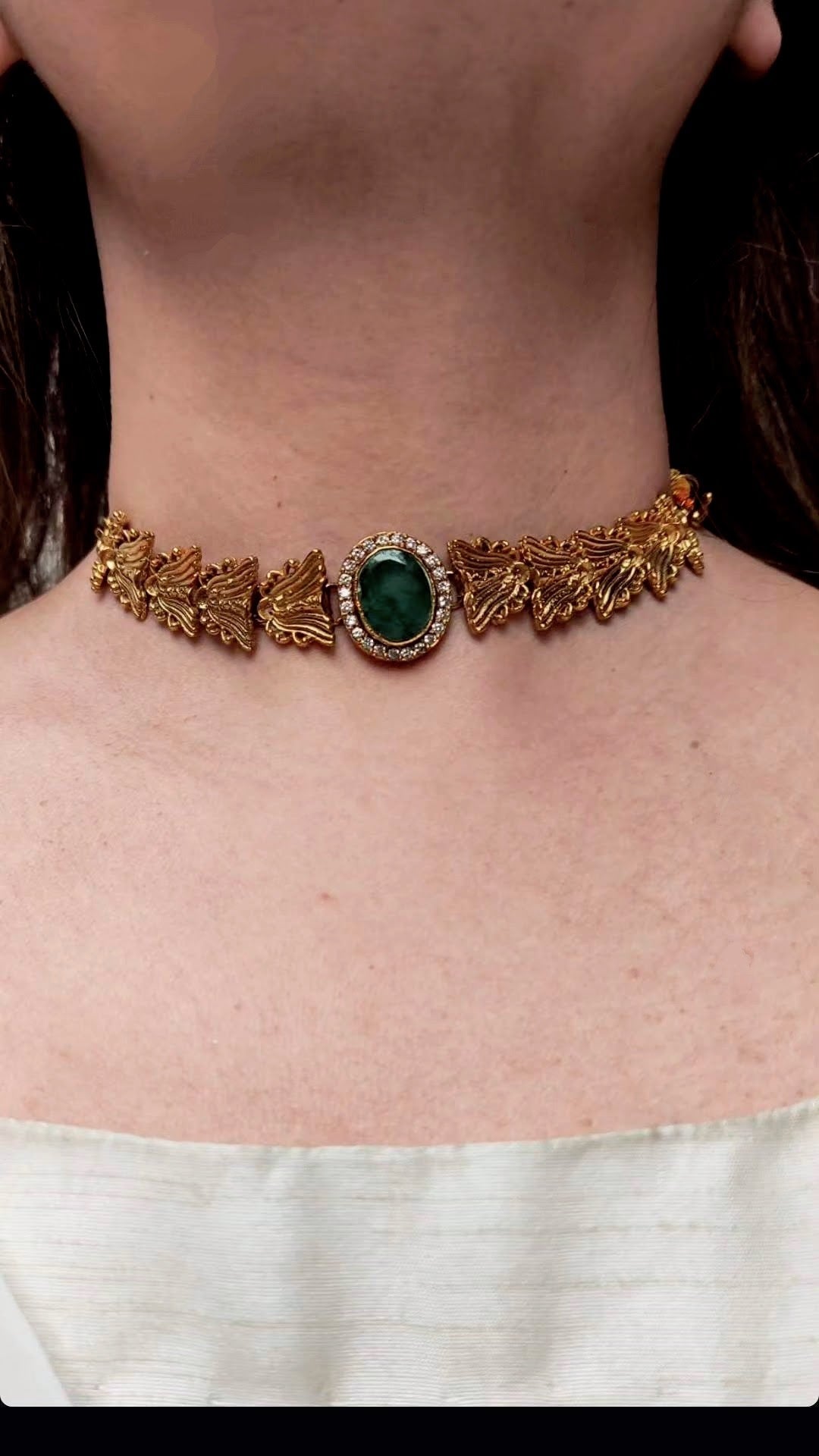 Discover true elegance with Lamiya. Crafted with care, this exclusive chokar showcases a beautiful handmade gold plated design adorned with natural stones. Elevate any outfit with its unique and timeless appeal.