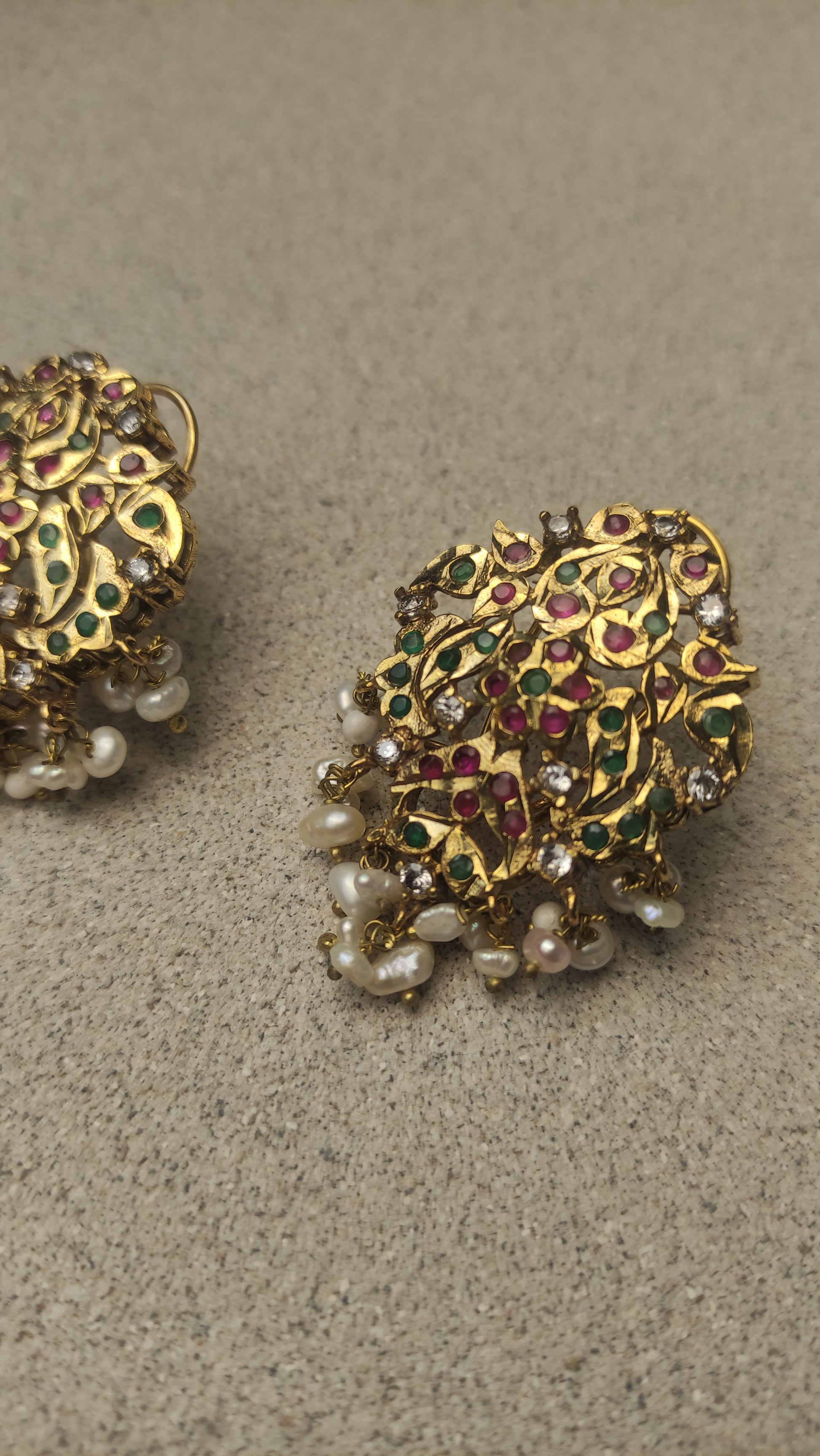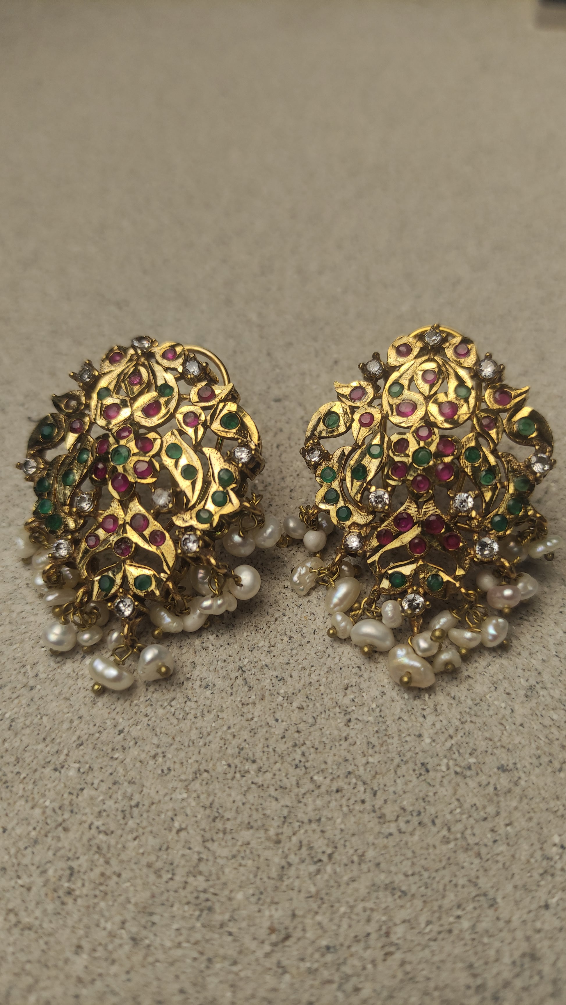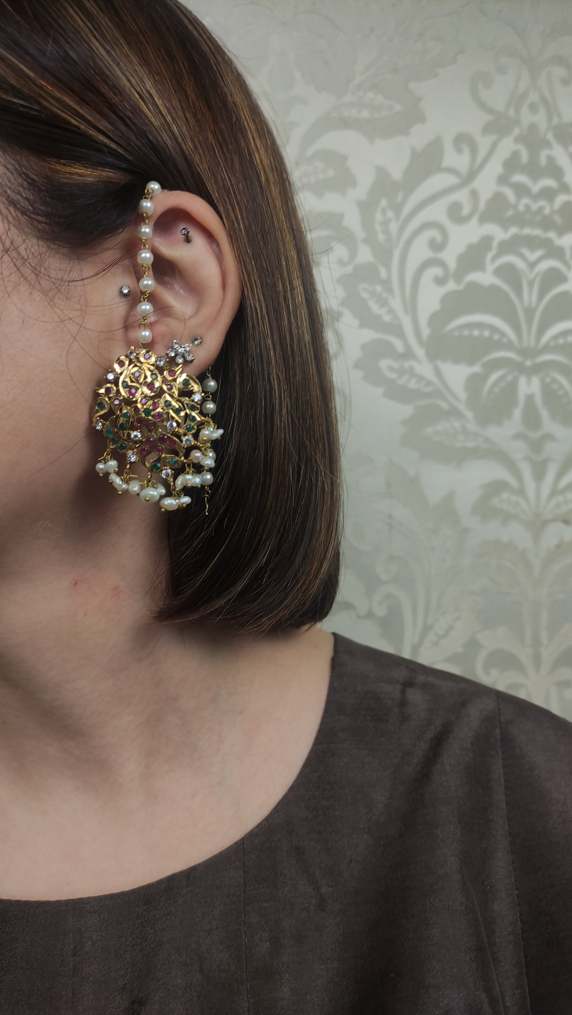 Lustrous Pearl Adornments: Carefully selected pearls that dangle with grace, adding movement and light to your face.