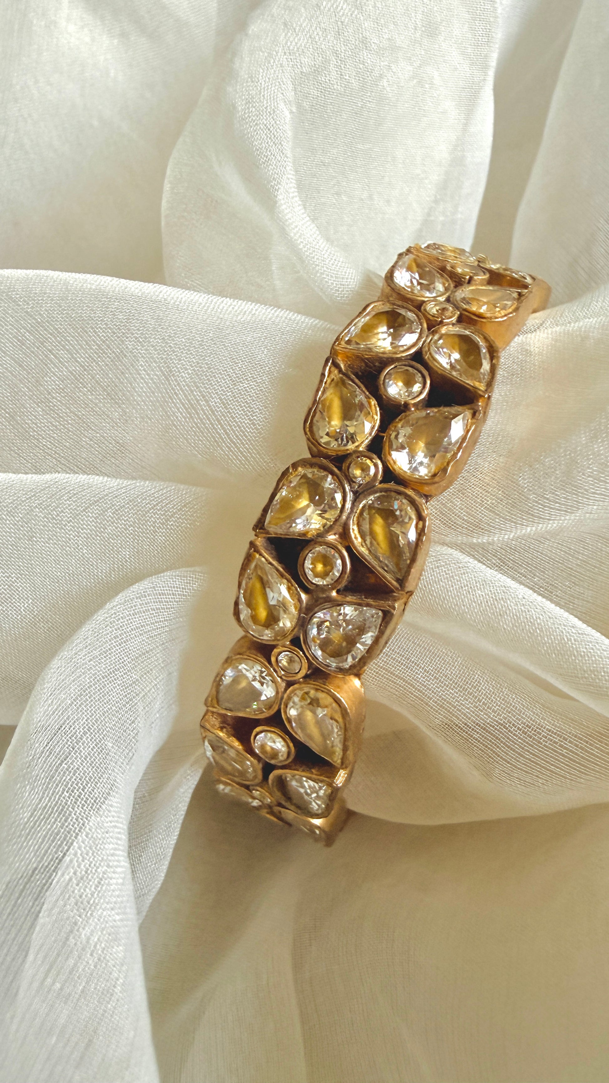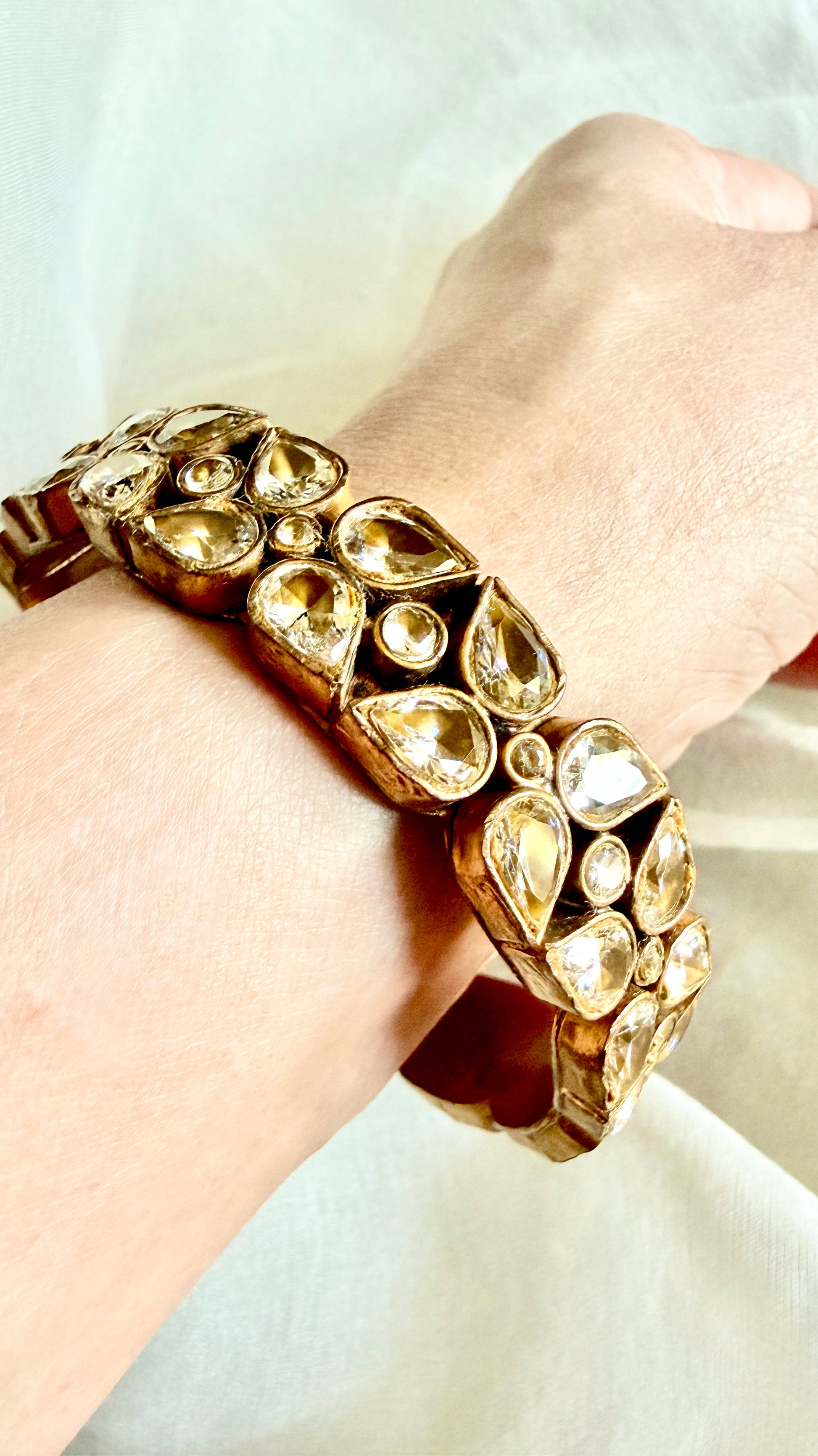 Intricate Kundan Work: The centerpiece of this cuff is the delicate Kundan detailing, which reflects light beautifully and adds a sophisticated, regal touch. 💎