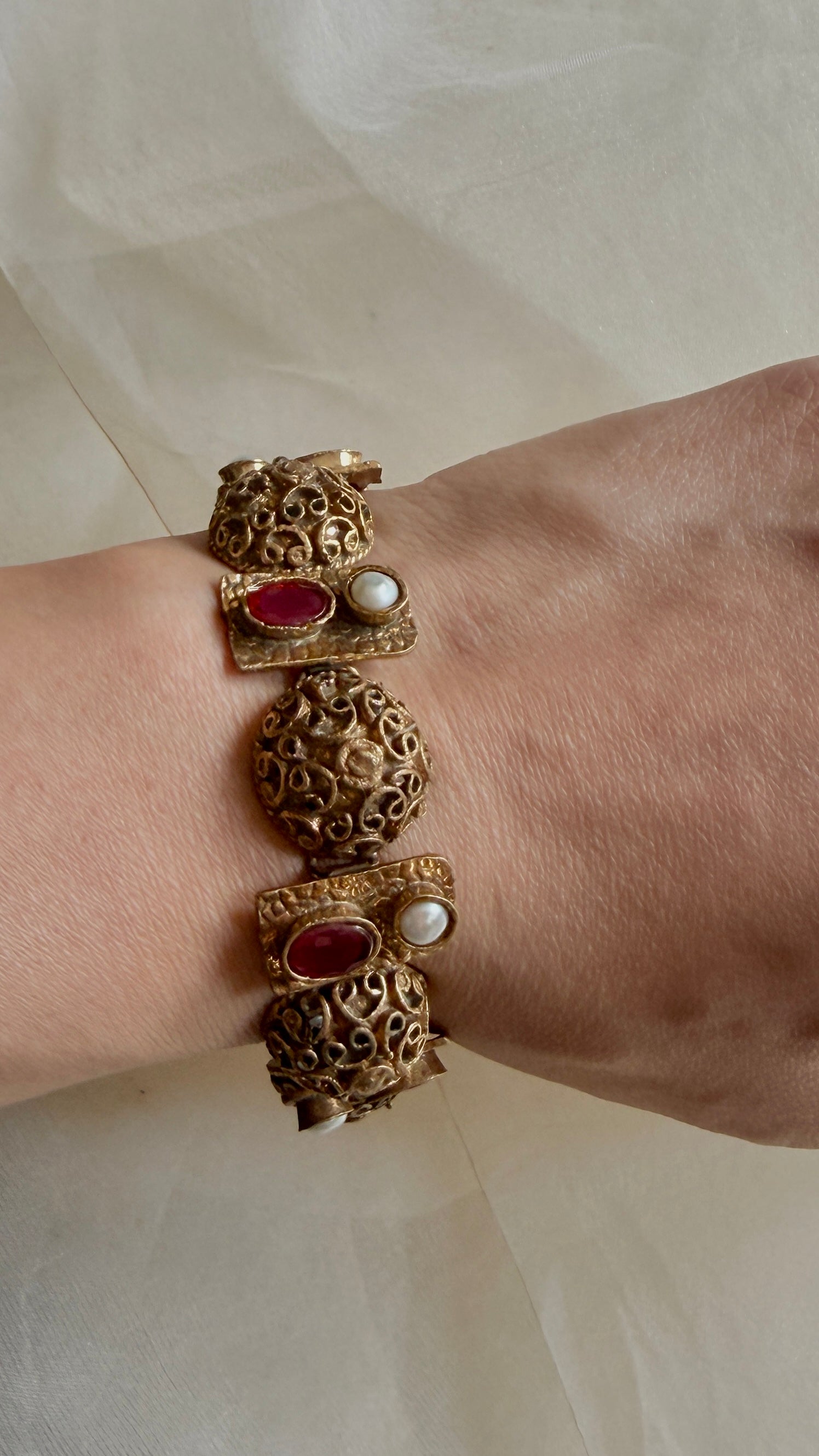 Luxurious Gold Plating: The radiant gold plating exudes opulence and sophistication, making this bracelet feel and look like a treasured heirloom.