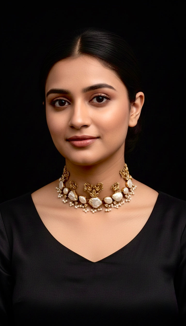 Luxurious Gold-Plated Finish: The radiant gold plating beautifully complements the mother of pearls, enhancing their elegance and adding a magnificent luster to the entire piece. ✨