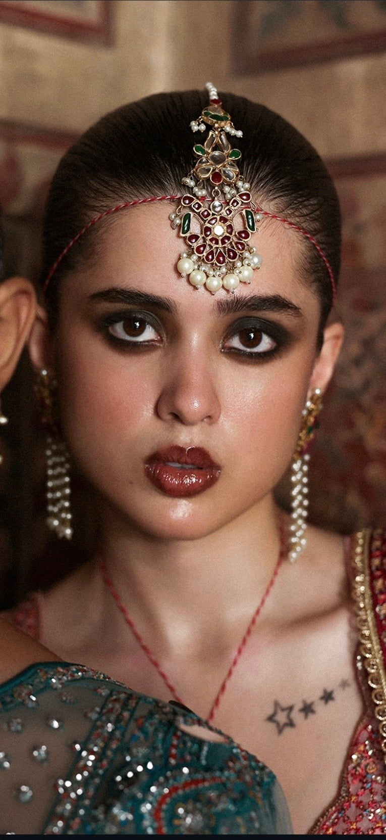 Complete your look with the timeless elegance of the Saiya bindiya. Indulge in its beautiful craftsmanship and elevate your personal style. Shop Saiya now at Tehmina Asad online store in Lahore, Karachi, Islamabad, and all the cities in Pakistan. 🛍️🇵🇰