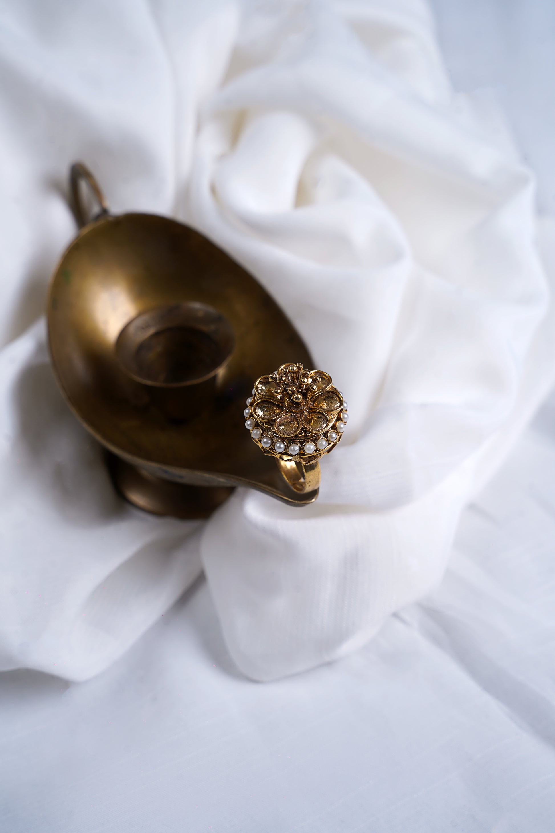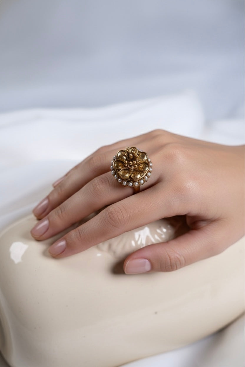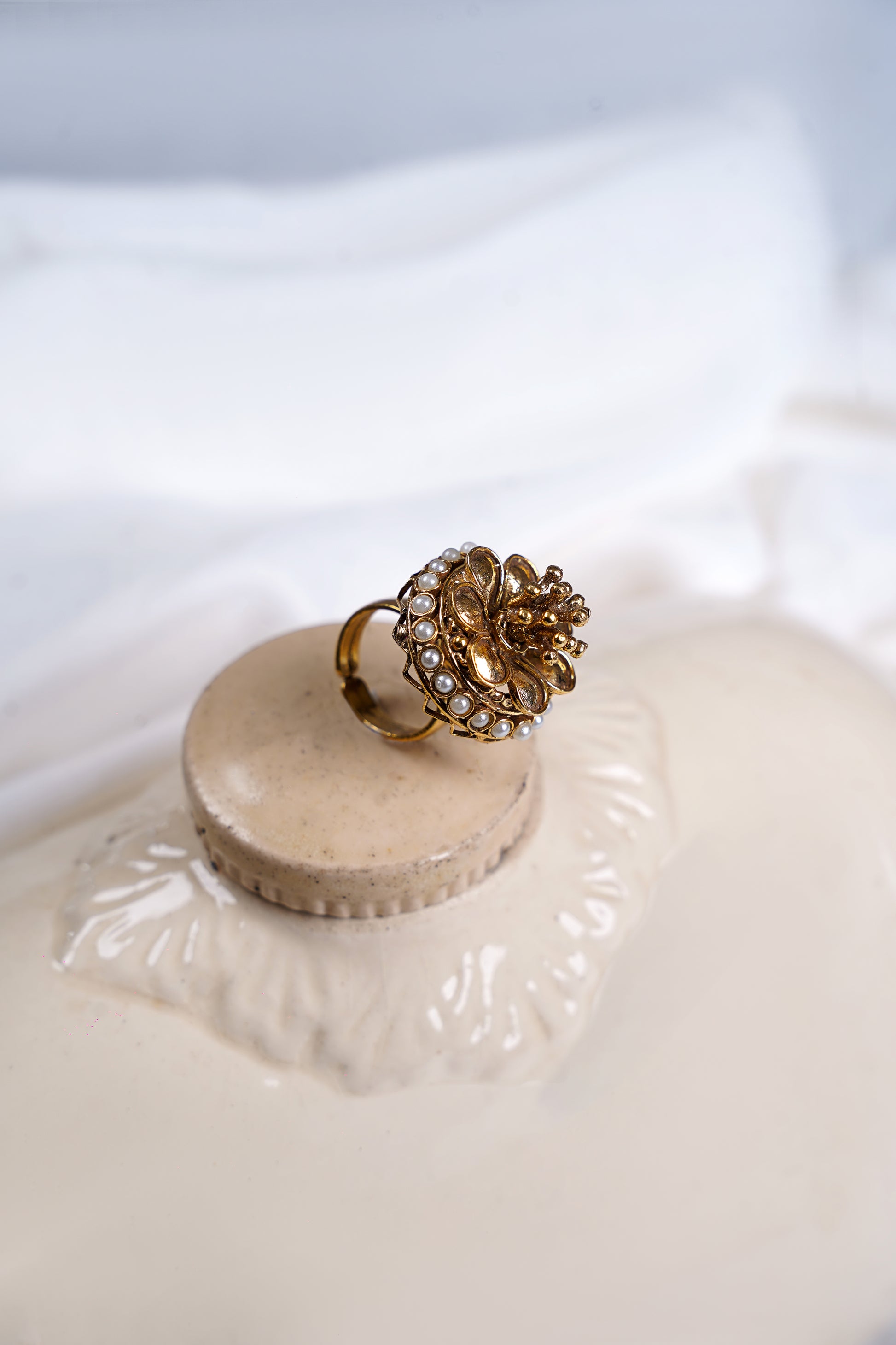 The Saras ring is a stunning piece that adds a touch of sophistication to any outfit. Its intricate design and high-quality craftsmanship make it the perfect accessory for special occasions.