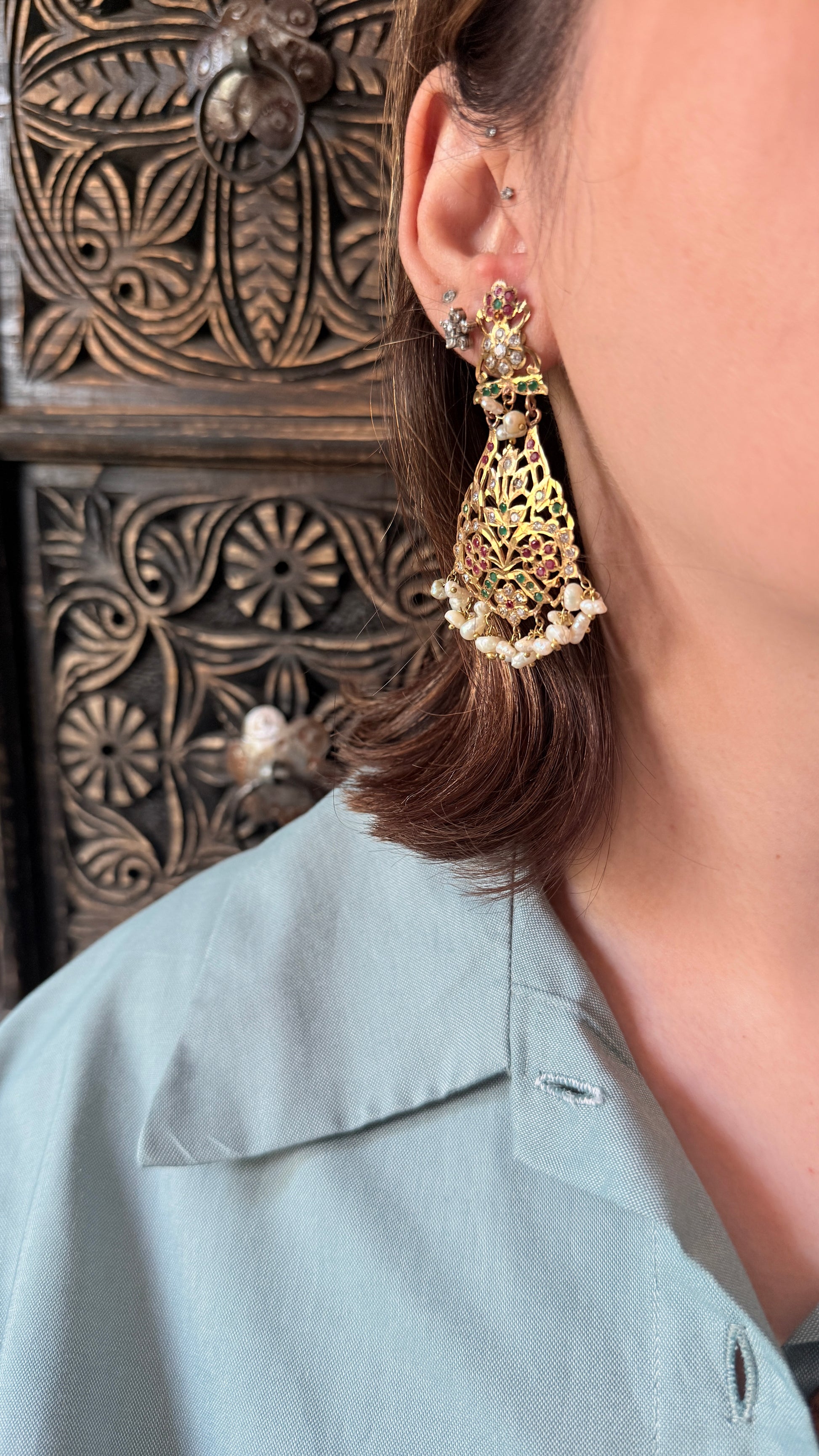 The Sheema earrings are a stunning piece that beautifully blends elegance with traditional design. Their handcrafted detail and gold-plated finish make them a perfect accessory for adding a touch of cultural richness to any ensemble.