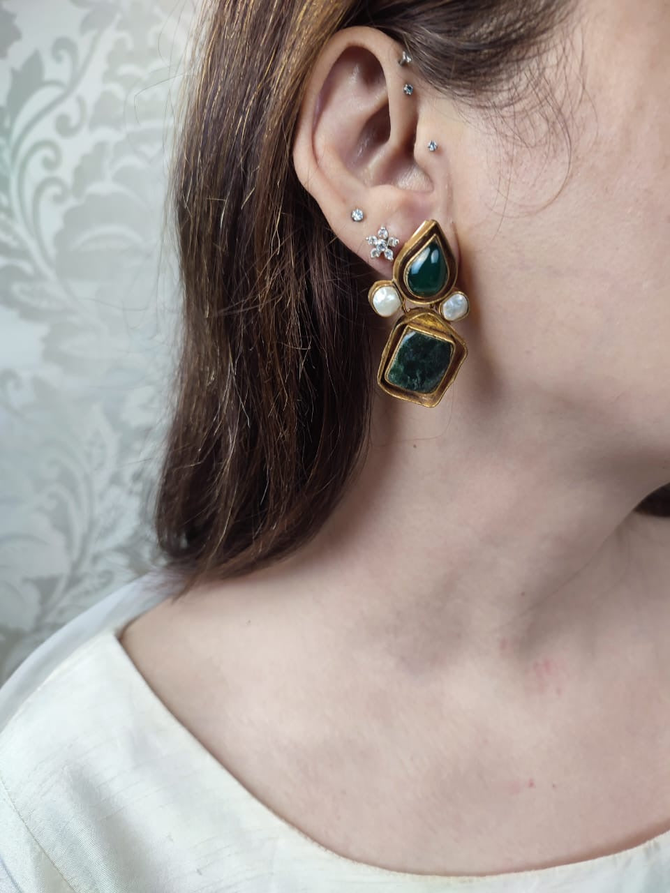 Use: Our stunning Amr earrings are perfect for both everyday wear and special occasions. They add a touch of sophistication and elegance to any outfit. These are natural stones and fresh water pearls.