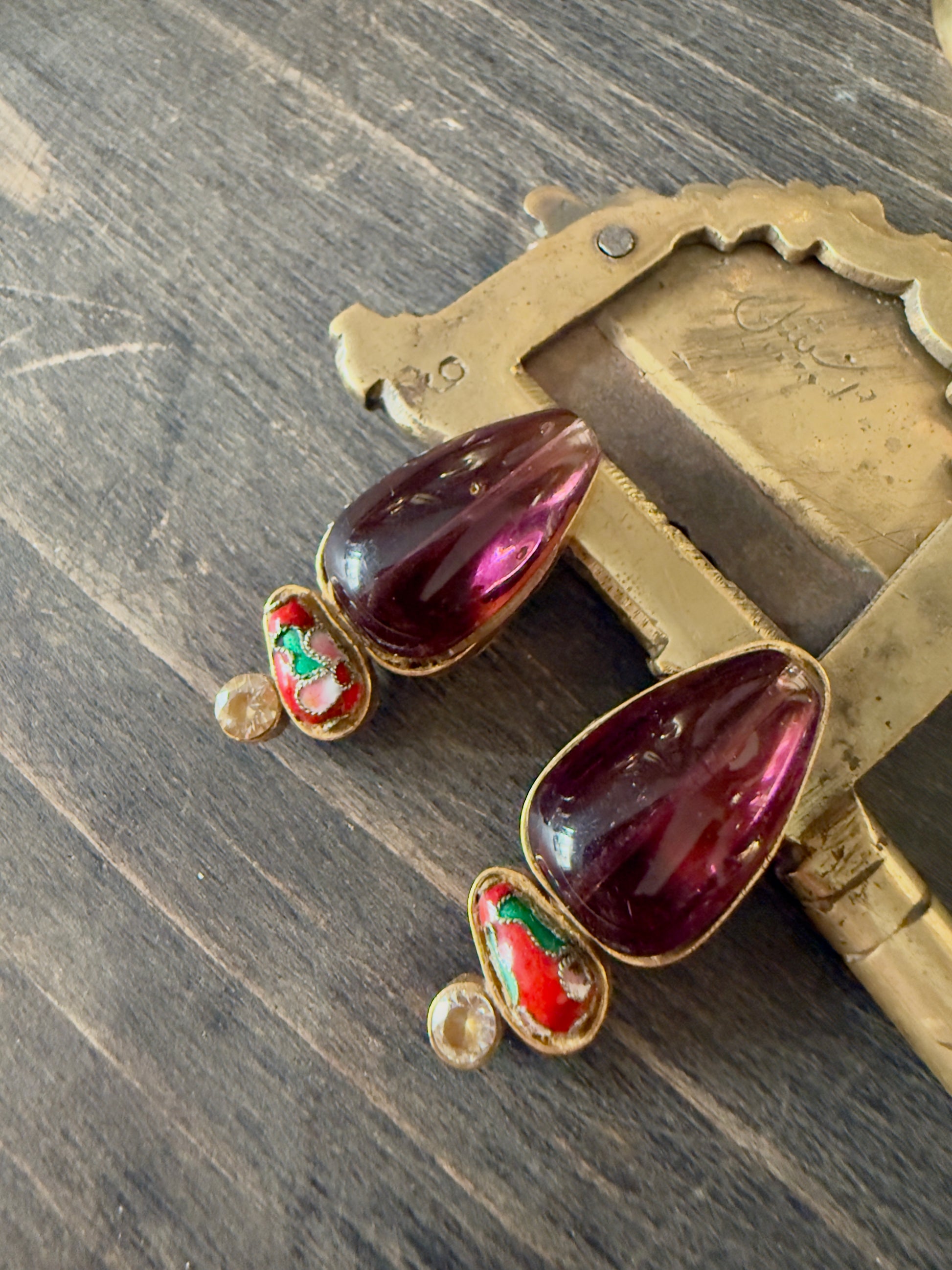 To keep your Vinea earrings looking brand new, avoid direct contact with perfumes, hairsprays, and water. Store them in the provided packaging to maintain the luster of the gold plating and the vibrancy of the hand-painted details. 💖