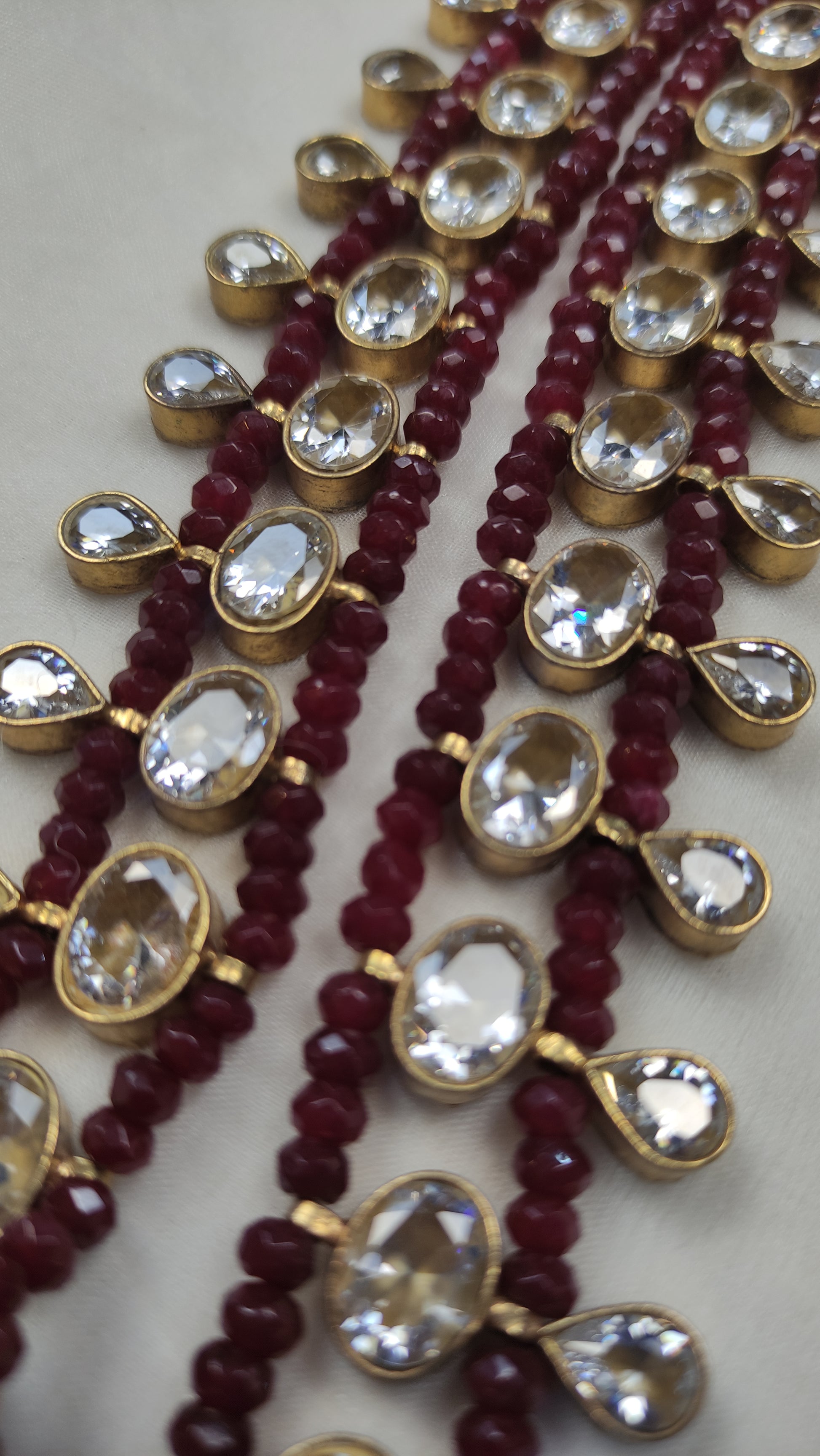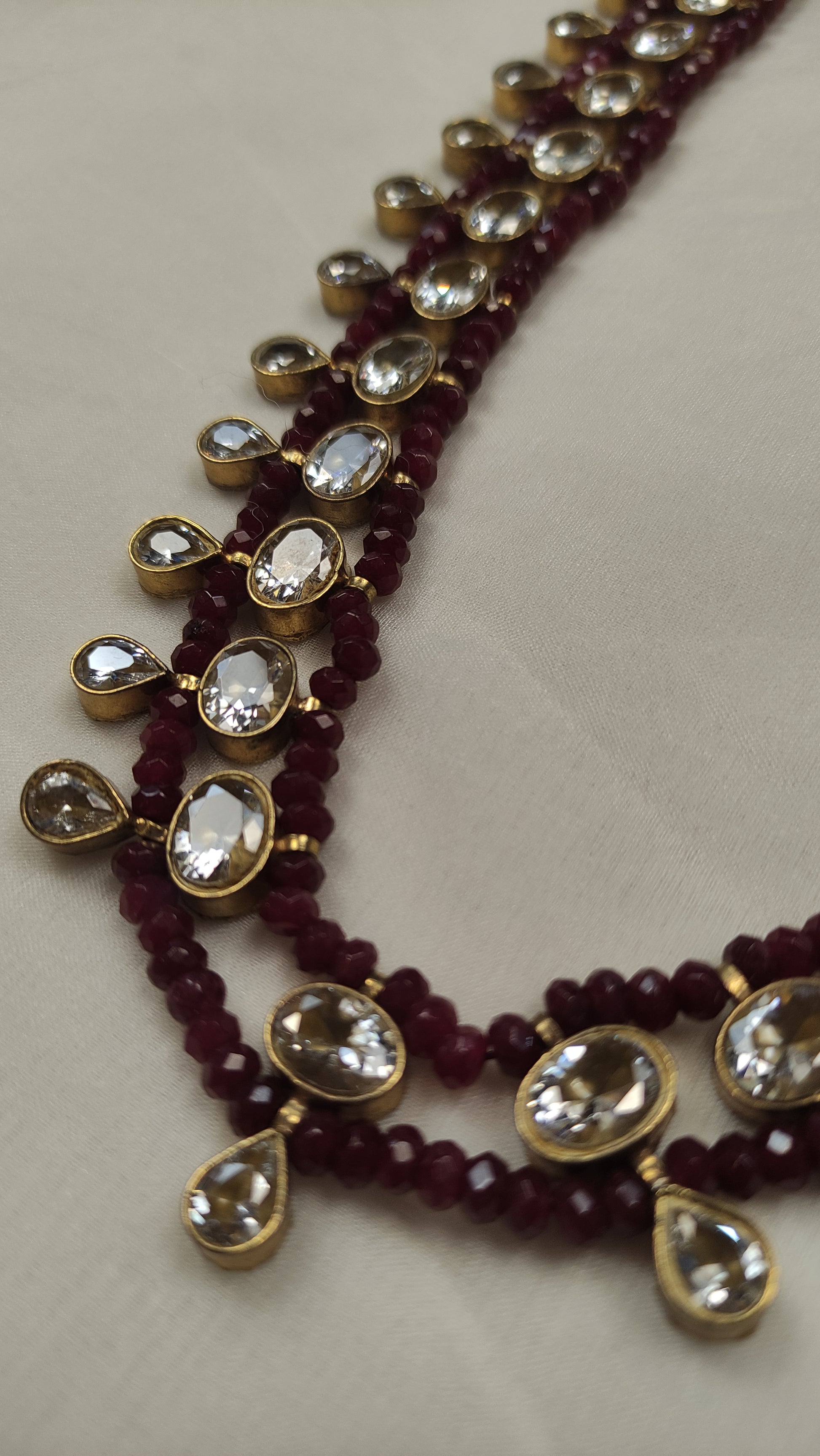 Featuring the timeless sparkle of authentic Polki diamonds and the deep, romantic hue of semi-precious rubies, this gold-plated necklace is designed for the woman who appreciates cultural depth and sophisticated style. 💎✨