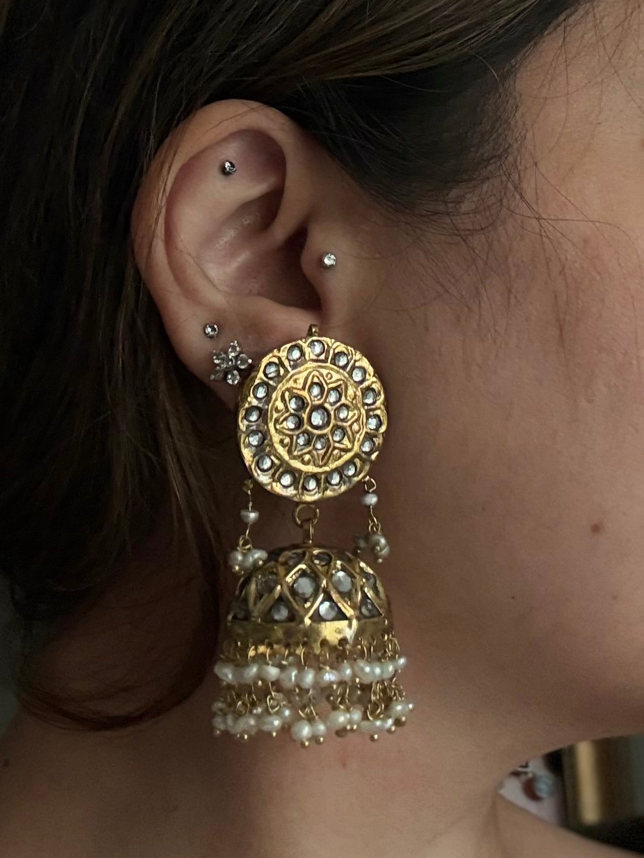 Rs.3,600.00Step into a realm of glitz with Yaram, where traditional jhumkas meet modern flair! These handmade beauties are gold-plated and sprinkled with real pearls, making them the perfect wingmen for your next shindig (or just your couch!). Adorn your ears and let the compliments roll in – who doesn’t love a little sparkle?