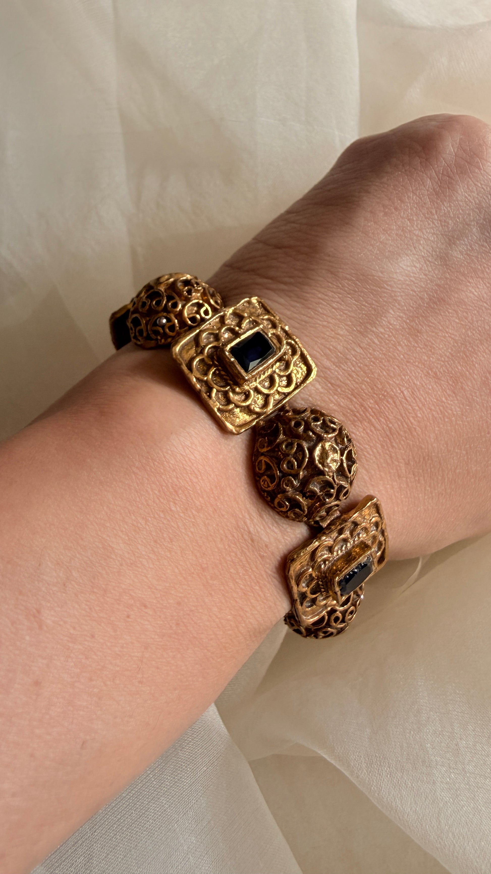 The Zaimus bracelet is a stunning piece that embodies traditional elegance. Its intricate handmade design and luxurious gold plating make it a perfect accessory for adding a touch of cultural richness to any ensemble.