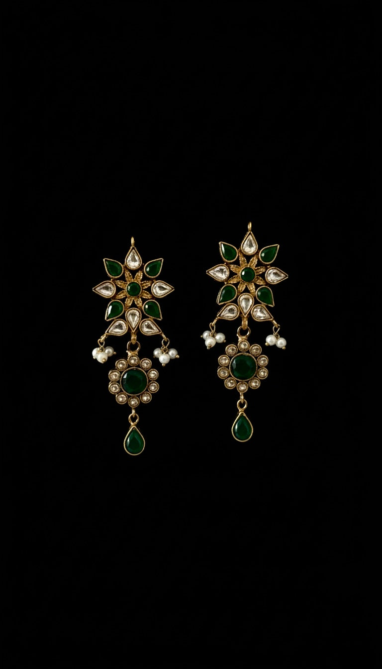 The Zari earrings are a celebration of traditional heritage and modern luxury. These stunning, handmade Kundan pieces are designed to bring a regal glow to your face, making them the perfect companion for the woman who loves to stand out with grace and sophistication. 💖
